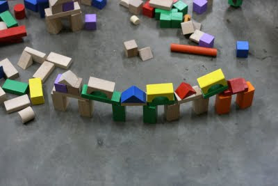 It was a miracle moment for me...they began to build, and play together, sharing the blocks and connecting their little houses to each other's buildings or towers.