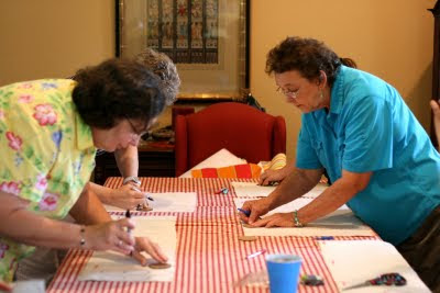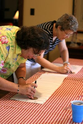 My friend, Stephanie, was the creative mastermind behind these mobiles, and helped me to come up with a plan on how to make each one.Then, these sweet women cut and traced and ironed, getting them all ready for packing!