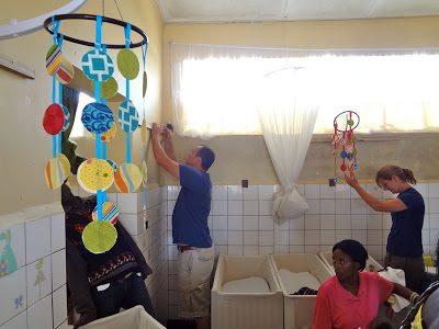 I guarantee you I was more blessed than they were, because following my time of sharing, they fed me lunch AND worked hard on these baby mobiles that we were planning to bring to Noel.